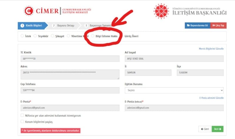 Bilgileri doğru ve eksiksiz şekilde girenler CİMER’den doğum saatini öğrenebiliyor.