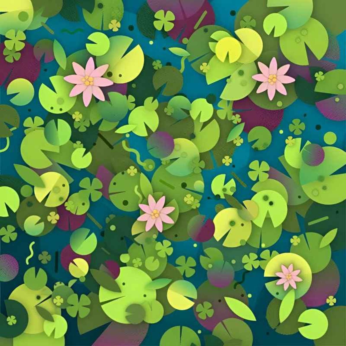 Yukarıda paylaşılan görselde, nilüfer çiçekleriyle dolu bir gölet manzarası yer alıyor.