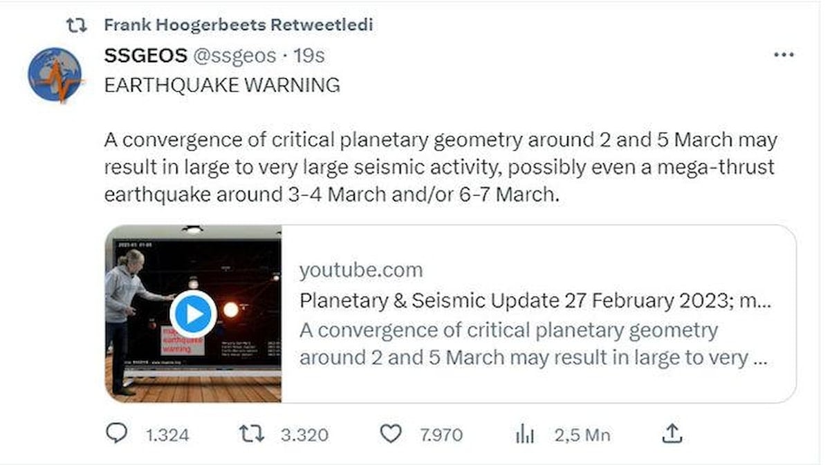 6 Şubat'ta meydana gelen Kahramanmaraş depremini tahmin etmesiyle gündeme damga vuran Frank Hoogerbeets, yeni paylaşımlar yaptı.