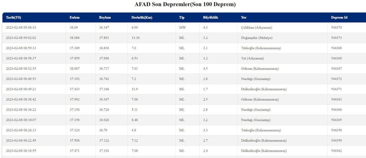 Meydana gelen depremler AFAD ve Kandilli tarafından her gün paylaşılıyor. Bugün 23 Şubat'ta belli belirsiz sarsıntılar hisseden vatandaşlar "Deprem mi oldu?" şeklinde sorgulamalar yapıyor. Gün içinde pek çok artçı meydana gelirken; Kahramanmaraş, Hatay, Gaziantep, Adana bölgelerinde çeşitli sallantılar meydana geldi.