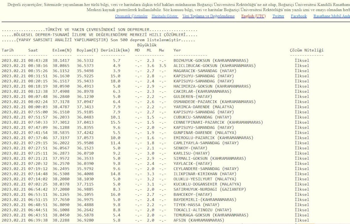 İşte Kandilli Rasathanesi'nin 23 Şubat 2023 deprem verileri: