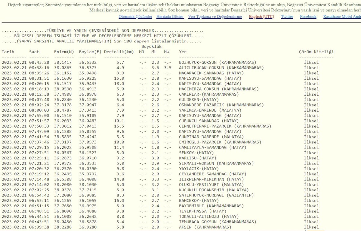 İşte Kandilli Rasathanesi'nin 25 Şubat 2023 deprem verileri:
