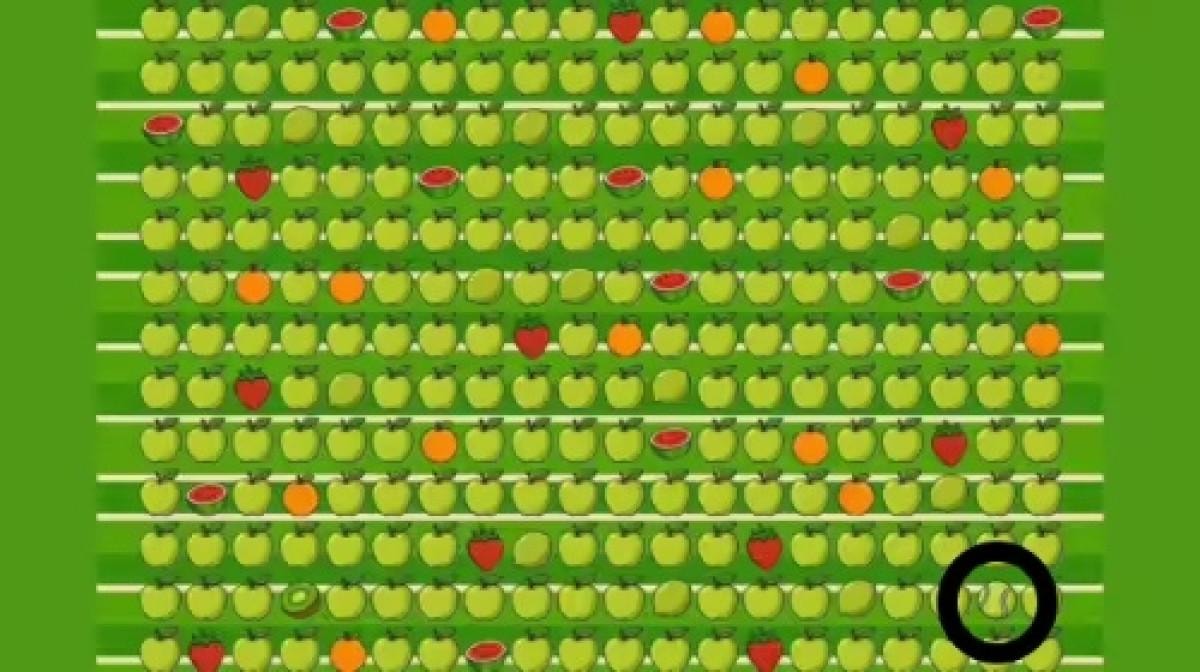 Aşağıdaki resimde elmalarla dolu bir sahne göreceksiniz. Ancak işin püf noktası şu: Sahnede saklanan bir tenis topu var ve onu bulmak sizin göreviniz.