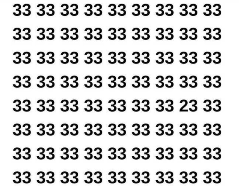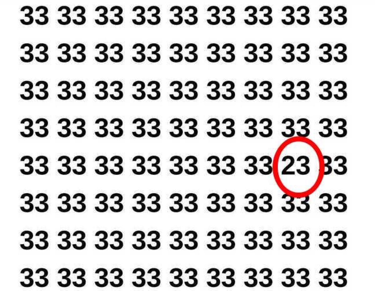 Yukarıda paylaşılan resimde, 33 rakamından oluşan bir sayı dizisi yer alıyor. Ancak aralarında gizlenen 23 sayısı da var.