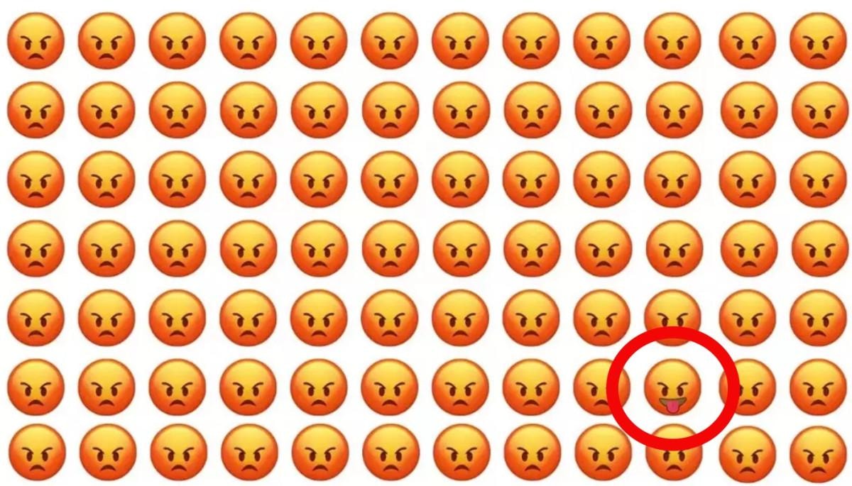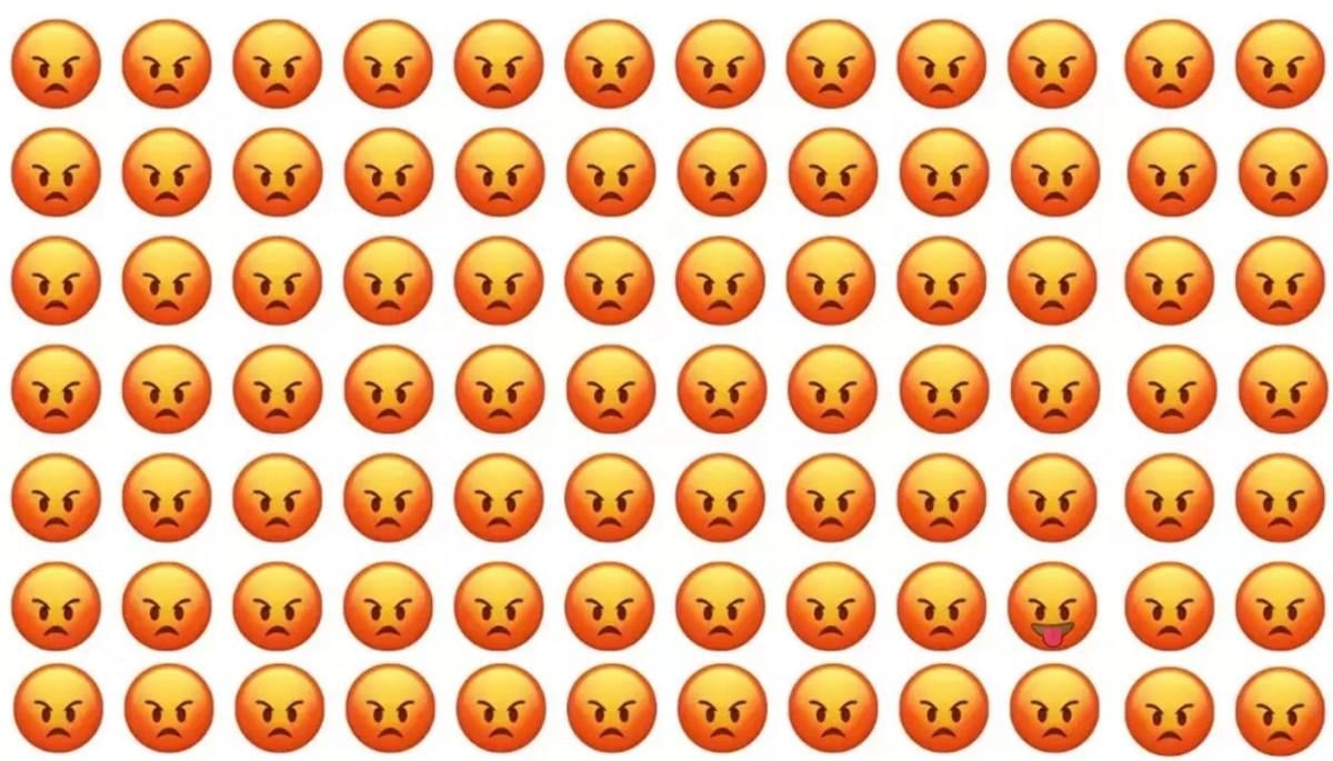 Resimde bulunan onlarca kızgın surat emojisi arasında bir tane farklı emoji yer alıyor.