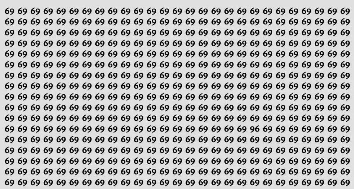 Resimde yüzlerce '69' sayısı bulunuyor. Fakat hepsinin arasında bir tane farklı sayı var.