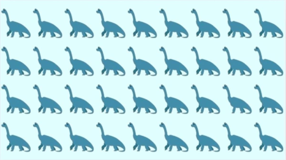 Bu görsel illüzyon mücadelesinde, 36 dinozor var; bunlardan biri hepsinden eşsiz. Benzersiz dinozoru 4 saniyede bulabilir misiniz?
