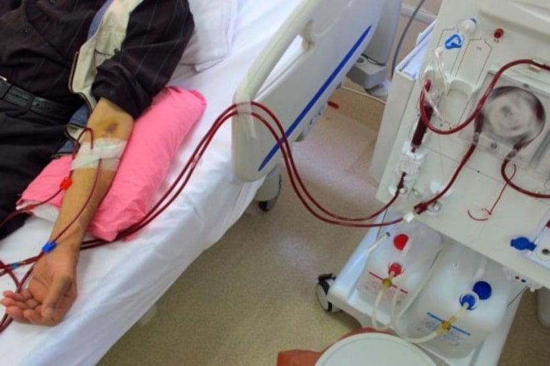 Hemodiyaliz ise kanın vücut dışında bir makine yardımı ile temizlenip vücuda geri verilmesi işlemidir. Kan bir iğne aracılığı ile hastanın kolundan alınır. Hemodiyaliz makinası, diyalizör denen bir filtreden kanı sürekli geçirerek zararlı maddeleri ve fazla suyu filtre eder. Filtre edilen temiz kan ikinci bir iğne ile hastanın damarına geri verilir.