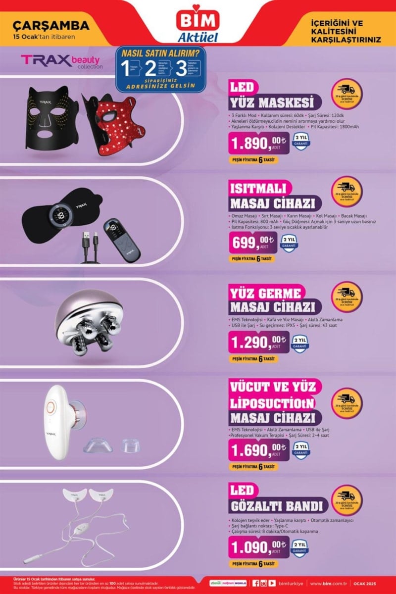 Kataloğun sürprizleri arasında, kişisel bakım ürünleri de yer alıyor. Yüz maskeleri ve masaj cihazları gibi ürünler, uygun fiyatlarıyla sağlığına ve rahatına düşkün müşterilerin ilgisini çekecek.