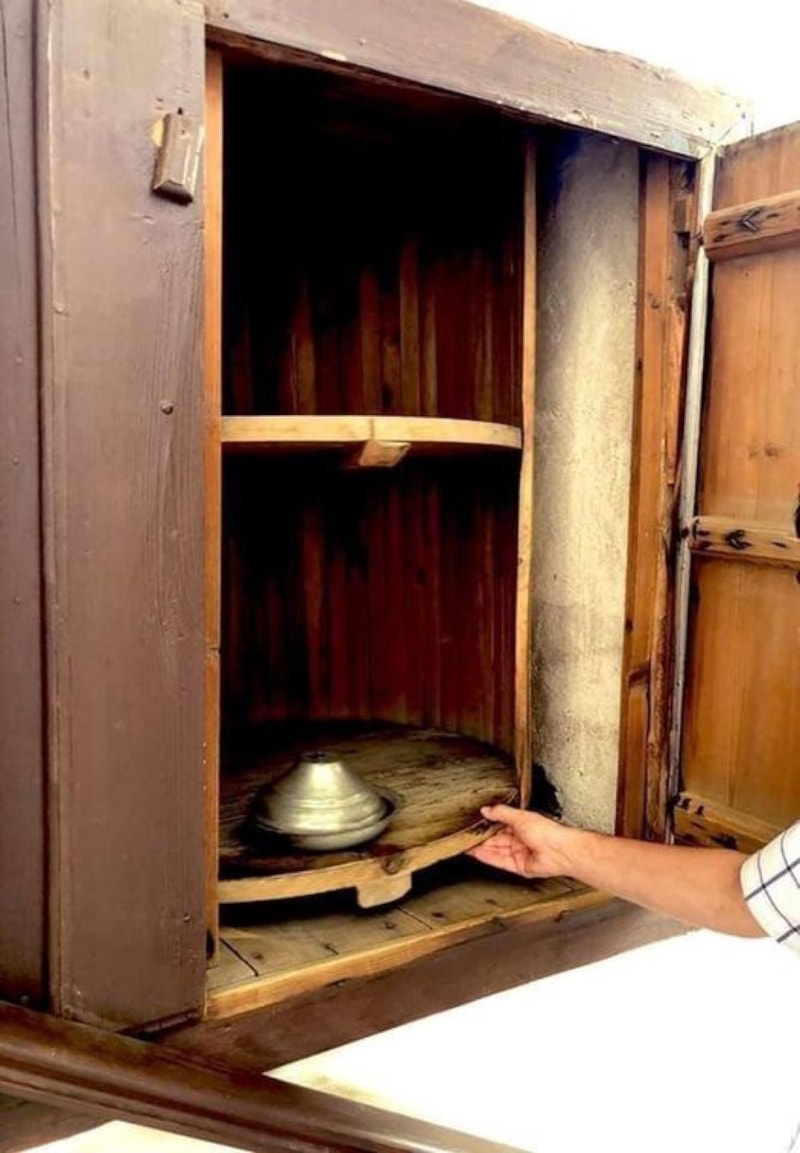 Haremlik-selamlık bölmesinin arasında ağaçtan, silindirik, alt ve üst kısımlarından bir mil ile tutturularak çevrilen dolaplar şeklindeydi.