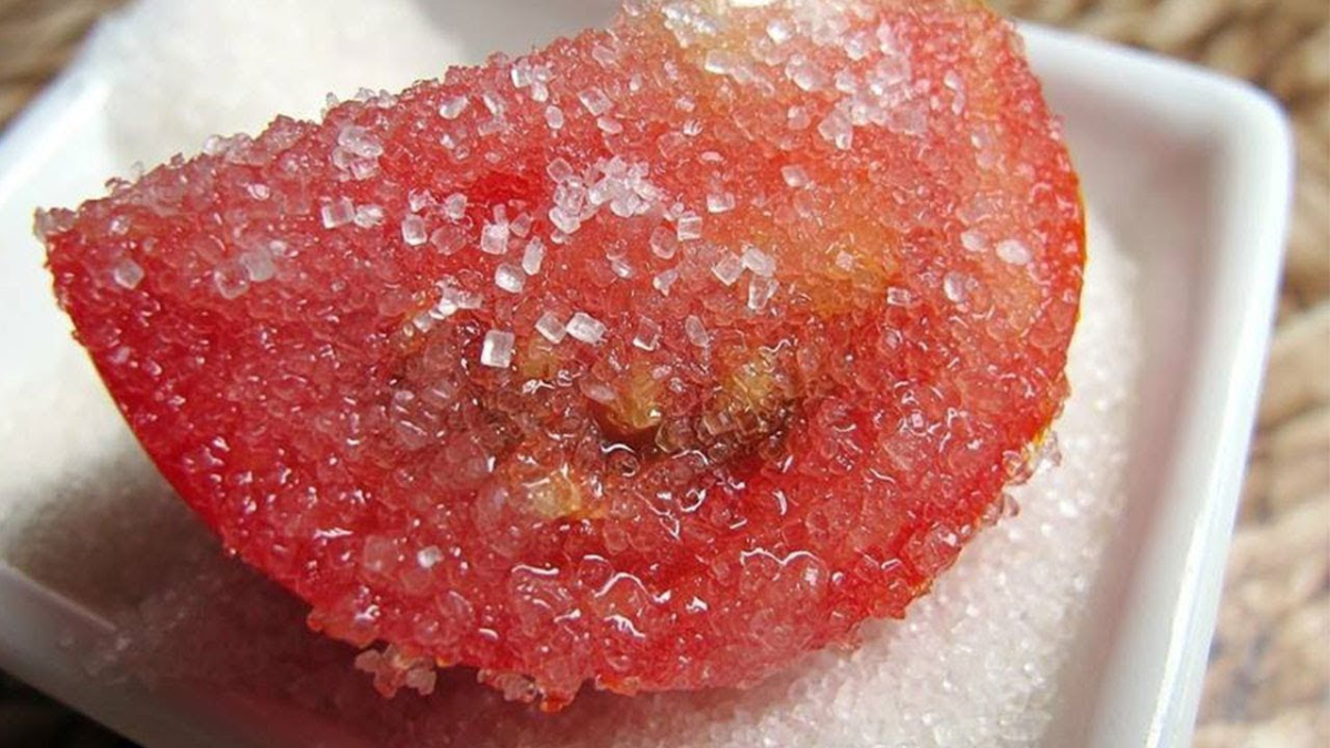 Doğal peeling etkisi gösteren domates-şeker karışı ile cildinizi onarmaya hazır olun...