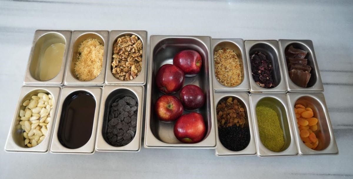 Çikolata içerisinde elma, ceviz, badem, kayısı gibi ürünlerin olduğunu vurgulayan Ölmez, "Malzemeler arasında en çok kullandığımız ürün kentin misket elması. Bu malzemeleri kullanmamızın nedeni yerel ürünlerimizin tadının daha baskın olması. Maliyeti de diğer çikolatalara göre düşük. Bu çikolatamız herkes tarafından uygulanabilir ve sürdürülebilir. Protein açısından yüksek, kalori açısından düşük bir çikolata. Henüz çikolatamıza bir isim vermedik ama isim ve tescil çalışmalarımız devam ediyor." ifadelerini kullandı.