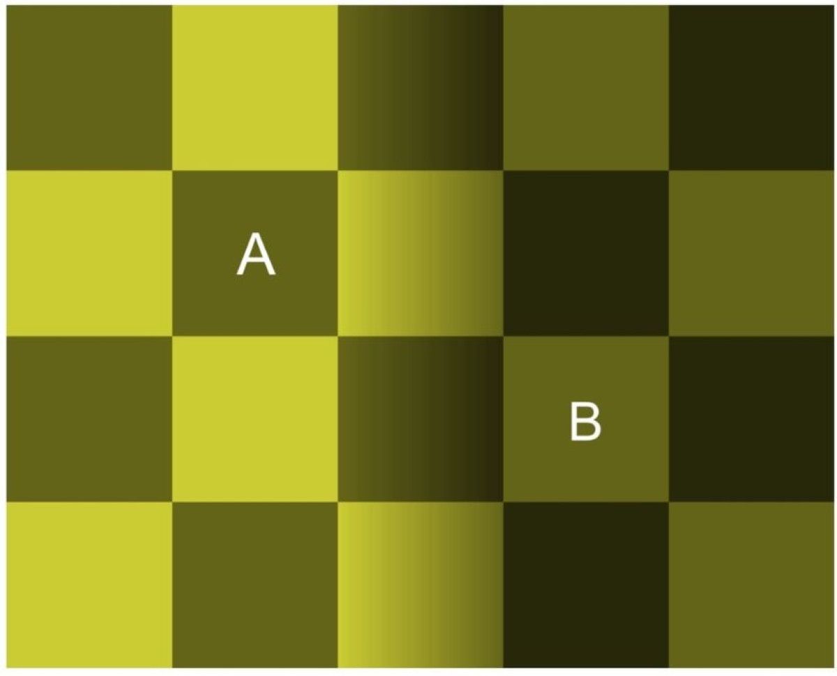 Bu son derece popüler görsel illüzyon, A ve B ile işaretlenmiş karelerden hangisinin daha koyu olduğunu bulmanız gereken bir meydan okuma sunuyor.