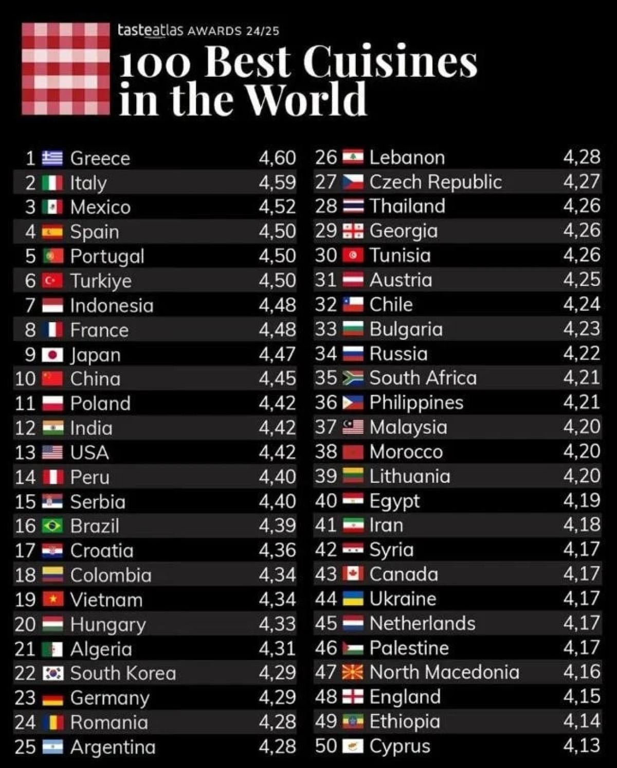 Dünya çapında yemek kültürlerini inceleyen saygın platform TasteAtlas, geleneksel tatların, yöresel lezzetlerin ve otantik tariflerin ışığında hazırladığı "Dünyanın En İyi Mutfakları" listesini açıkladı.