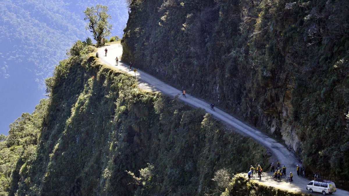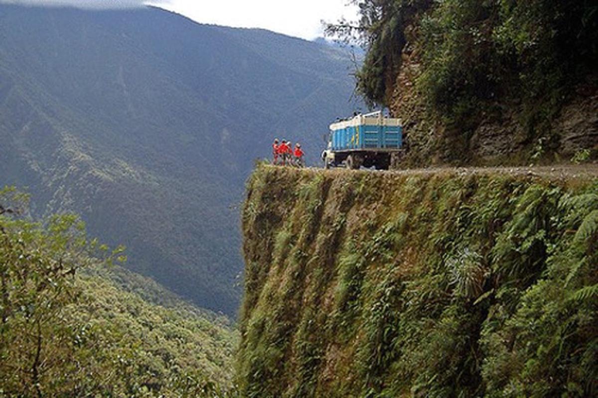 La Paz'dan Coroico'ya kadar yaklaşık 40 mil (61 km) uzanan bu yol, And Dağları'nın içinden kıvrılarak geçiyor, korkulukları olmayan ve sadece bir araç için yeterli alana sahip uçurumların üzerinde yer alıyor.