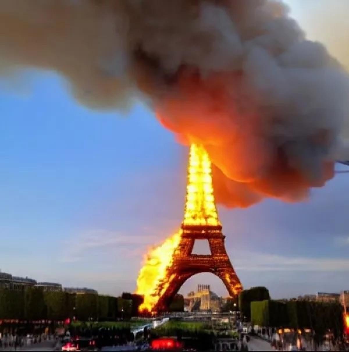 Oldukça gerçekçi duran Eyfel Kulesi yangını görüntüleri birçok sosyal medya kullanıcısının bu olaya inanmasına sebep oldu.