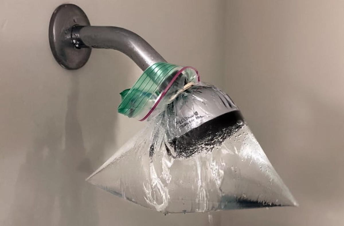 Duş başlığına poşet geçirin ve sirke ya da çamaşır suyuyla temizleyin.