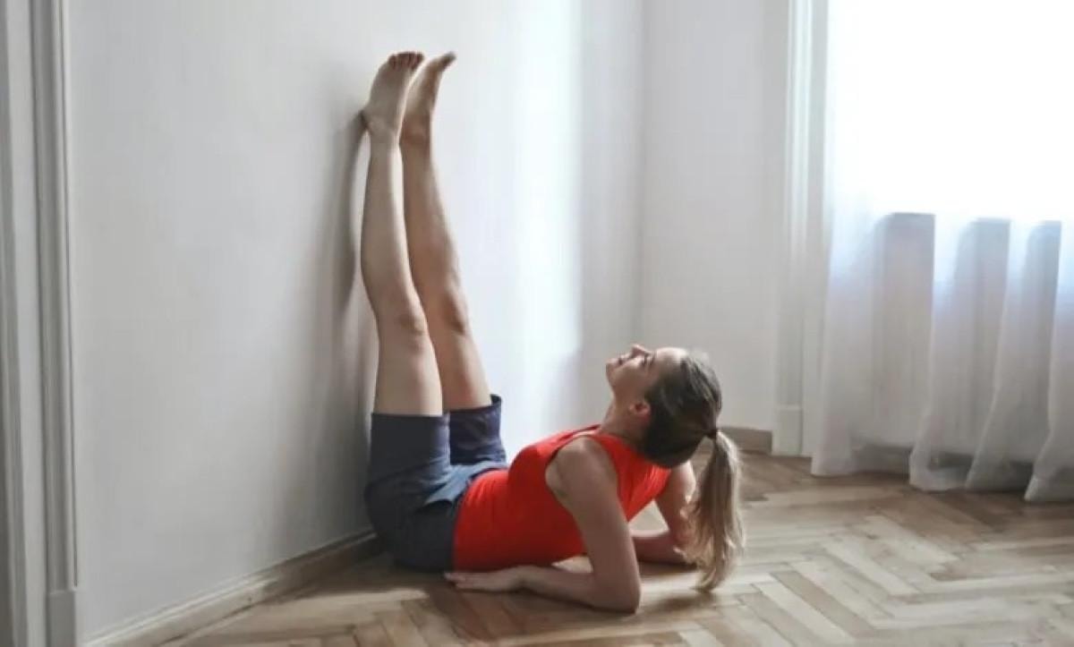 Sırtınızı duvara yaslayarak yere uzanın. Bacaklarınızı duvara doğru kaldırın, dizlerinizi hafifçe bükün ve topuklarınızı yukarı doğru itin. Bacaklarınızı yavaşça indirin ve tekrar kaldırın. Her bacak için 10-15 tekrar yapın.
