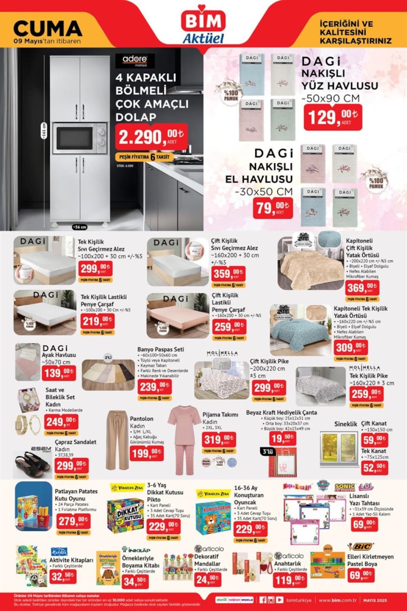 Türkiye'nin uygun fiyatlı market zinciri BİM, 9 Mayıs tarihli indirim kataloğunu yayımladı. Bu hafta çocuklardan yetişkinlere herkesin yüzü gülecek. Onlarca ürün indirimli fiyatlarıyla raflarda yerini alacak. İşte BİM 9 Mayıs Aktüel Katalog...