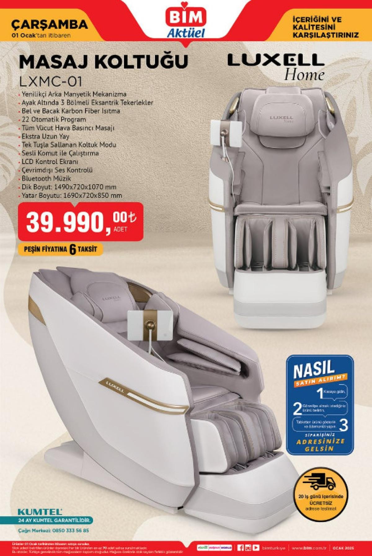 BİM’in 1 Ocak’taki kampanyasında öne çıkan ürünlerden biri, 39.990 TL’lik fiyatıyla dikkat çeken masaj koltuğu.