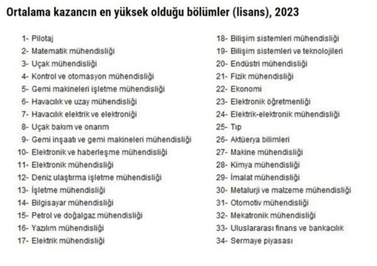 Bu bölümü, %95,3 ile tıp, %93,9 ile dil ve konuşma terapisi, %93,2 ile elektrik öğretmenliği ve %92,4 ile ebelik izledi.