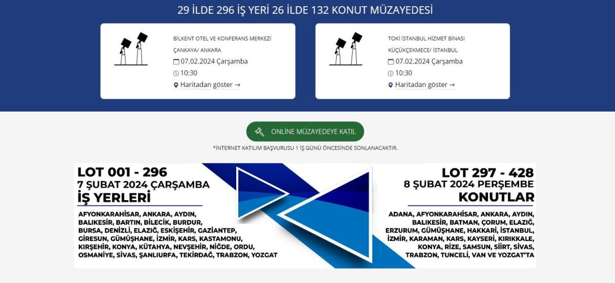 Emlak Müzayede sitesinde yapılan açıklamada, “Açık Artırma toplantısına katılacak olan gerçek veya tüzel kişiler, toplantı öncesinde T.Halk Bankası A.Ş ve T.C. Ziraat Bankası A.Ş’nin tüm şubelerine katılım teminatı yatıracaklardır. Satın alınmak istenilen taşınmaz adedi kadar teminat yatırılması gerekmektedir” denildi.