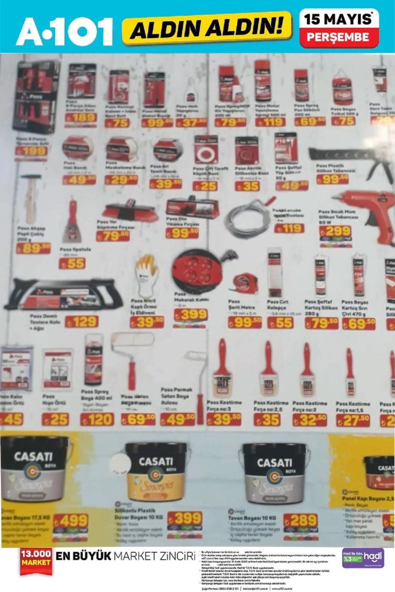 A101, 15 Mayıs 2025 Perşembe günü için hazırladığı aktüel ürünler kataloğunu yayınladı. Bu hafta A101 mağazalarında yok yok! Onlarca ürün indirimli fiyatlarıyla alıcılarını bekleyecek. İşte A101 15 Mayıs Aktüel Katalog...