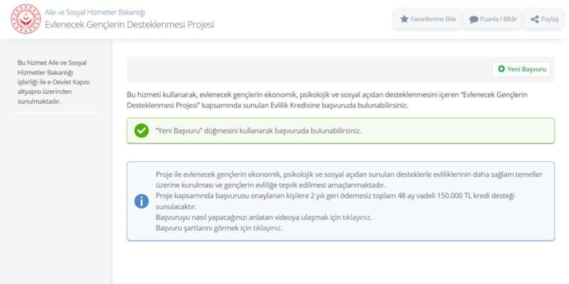 Evlilik kredisi başvuru ekranı