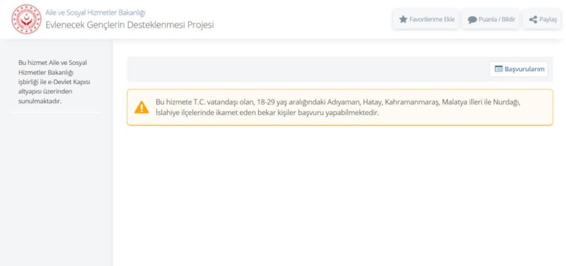Ancak öncelikli olarak eşlerden birinin 06.02.2023 tarihinde ve başvuru anında Adıyaman, Kahramanmaraş, Hatay, Malatya illerinden ya da Gaziantep ilinin Nurdağı ve İslahiye ilçelerinden birinde ikamet ediyor olması ve başvurunun burada ikamet eden kişi tarafından yapılması gerekmektedir.