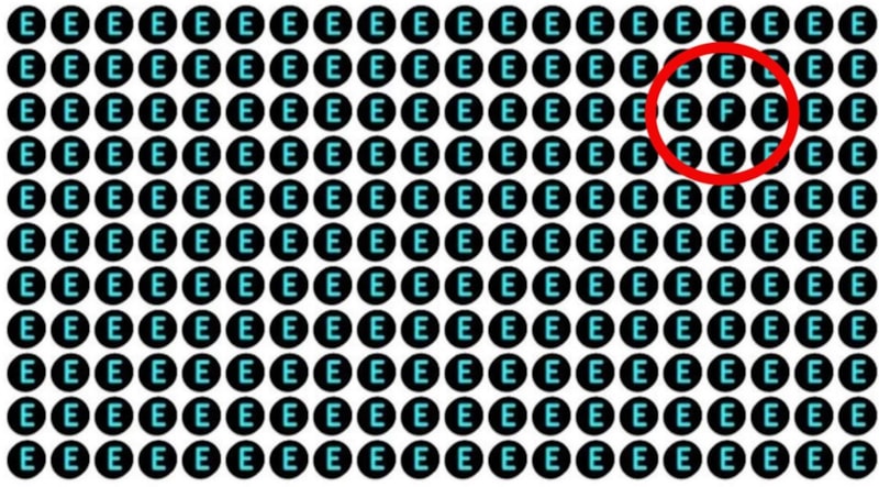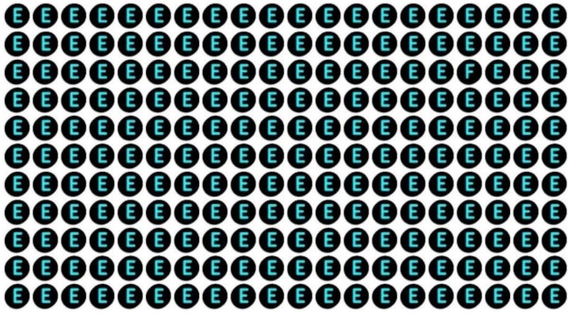 Resimde 'E' harfi dışında farklı bir harf daha yer alıyor. Peki, siz resime bakınca farklı olan harfi kaç saniyede bulabileceksiniz?