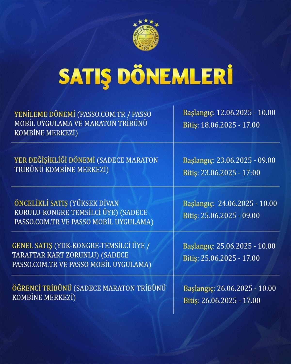 Sarı-lacivertli kulüpten yapılan açıklamada, kombine kart satışının 12 Haziran Perşembe günü saat 10.00'da başlayacağı belirtildi.