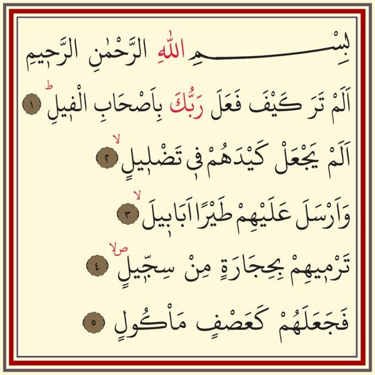 Fil suresi Arapça okunuşu