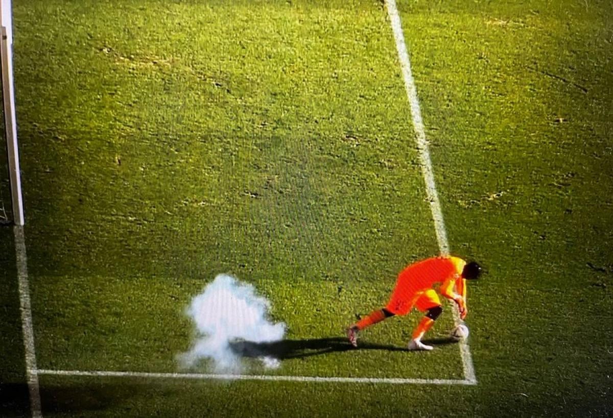 Maçın 90. dakikasında Montpellier tribünlerinden atılan bir havai fişek Clermont kalecisi Mory Diaw'a isabet etti.