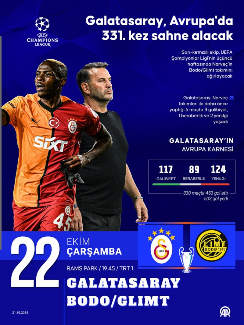 Galatasaray, uzun zaman sonra UEFA Şampiyonlar Ligi'nin lig/grup etabında üst üste 2 kez galibiyet elde etmek için Bodo/Glimt'in karşısına çıkacak.