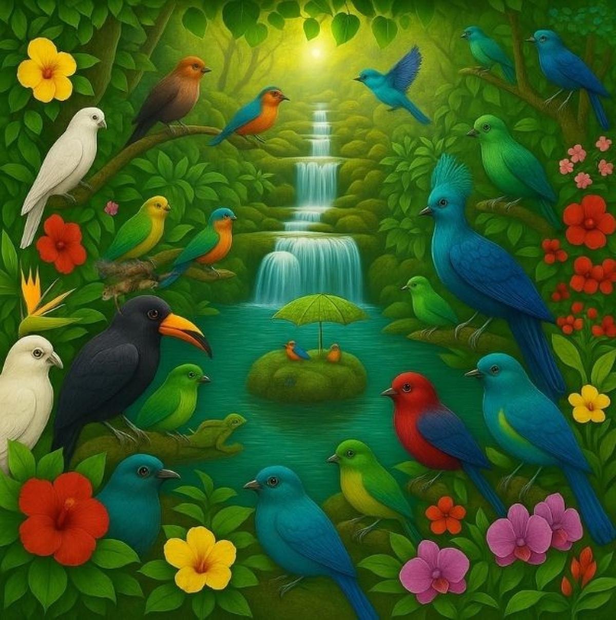 Bugün, herkesin dilinde olan heyecan verici bir zeka oyunuyla karşınızdayız! Aşağıdaki görselde, ormanda çeşitli güzel kuşlar görüyorsunuz.