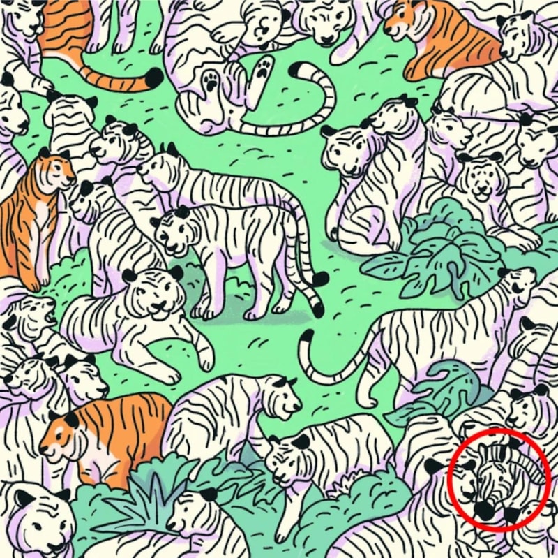 Bu test gözlem yeteneklerinizi sınıyor ve zihinsel keskinliğinizi ölçüyor. Bu optik illüzyonda bir grup kaplanın arasında özenle gizlenmiş bir zebra yer alıyor. 5 saniye içinde zebrayı bulabilir misiniz?