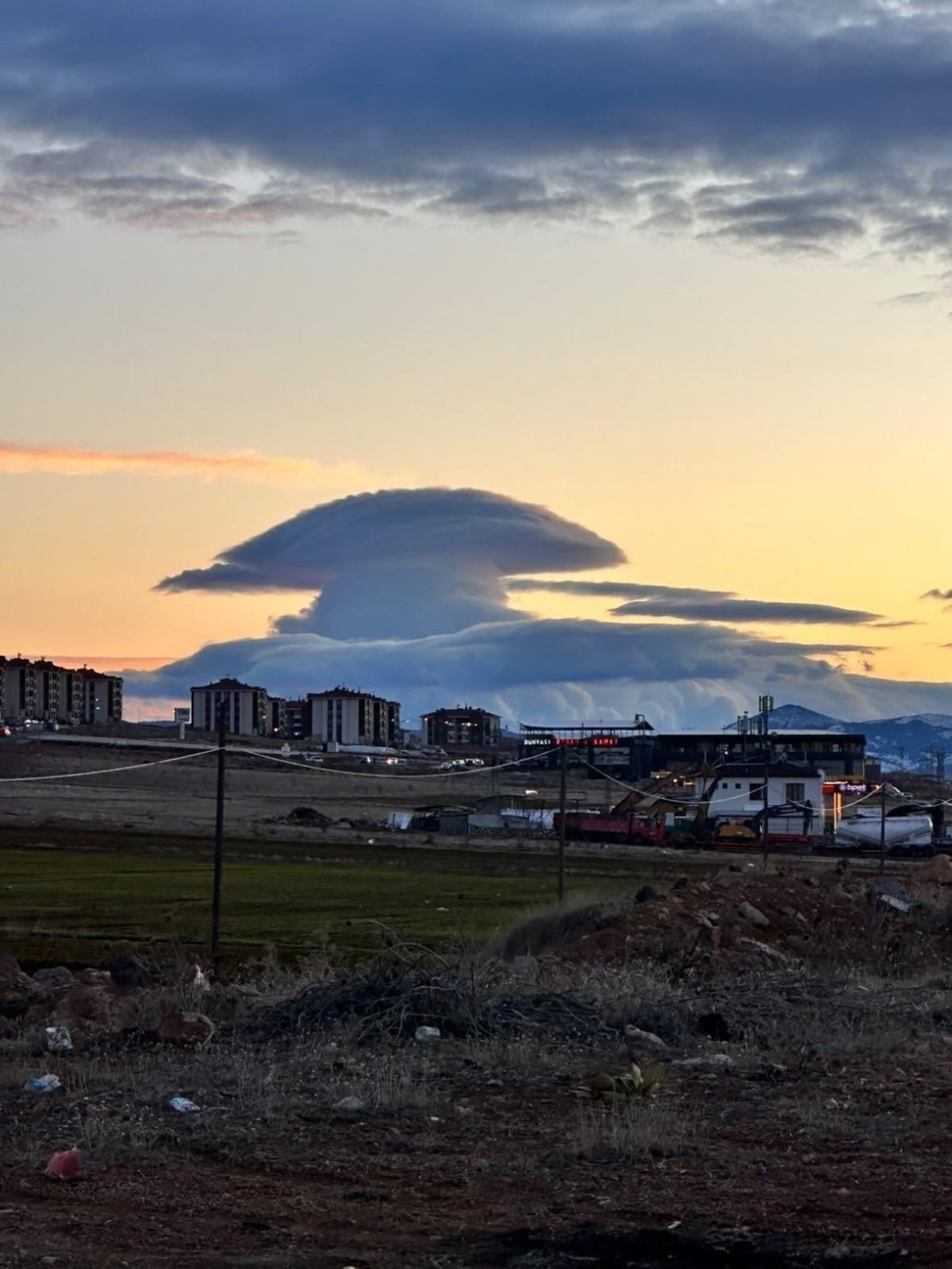 Elazığ’ın Güneykent Mahallesi’nde dev mantar görünümlü bulut görüldü.