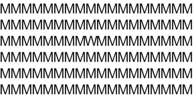 En yüksek görme keskinliğine sahip kişiler, bu resimdeki M'ler arasındaki W'yi 4 saniyede tespit edebilir. Sen de görsel zekanı test et! Bakalım 4 saniyede bulabilecek misin…