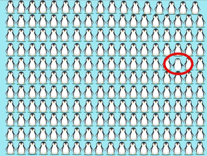 Aşağıda penguenlerle dolu bir resim bulunmaktadır. Bütün penguenler arasında sadece bir tanesi farklı.
