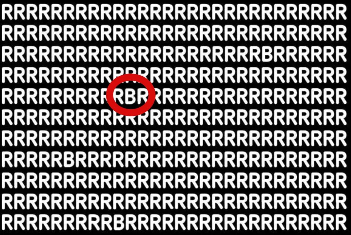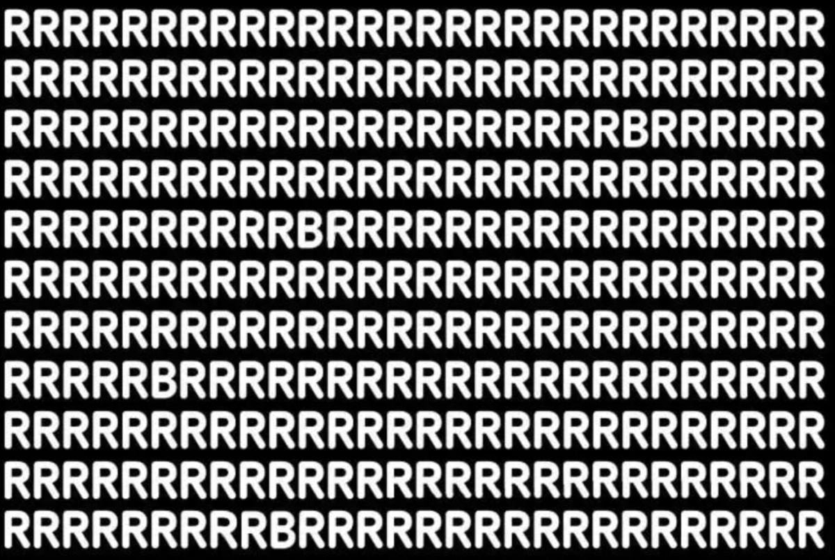 Resimde 'R' harfi dışında bir farklı harf daha yer alıyor. Peki, siz resime bakınca farklı olan harfi kaç saniyede bulabileceksiniz?