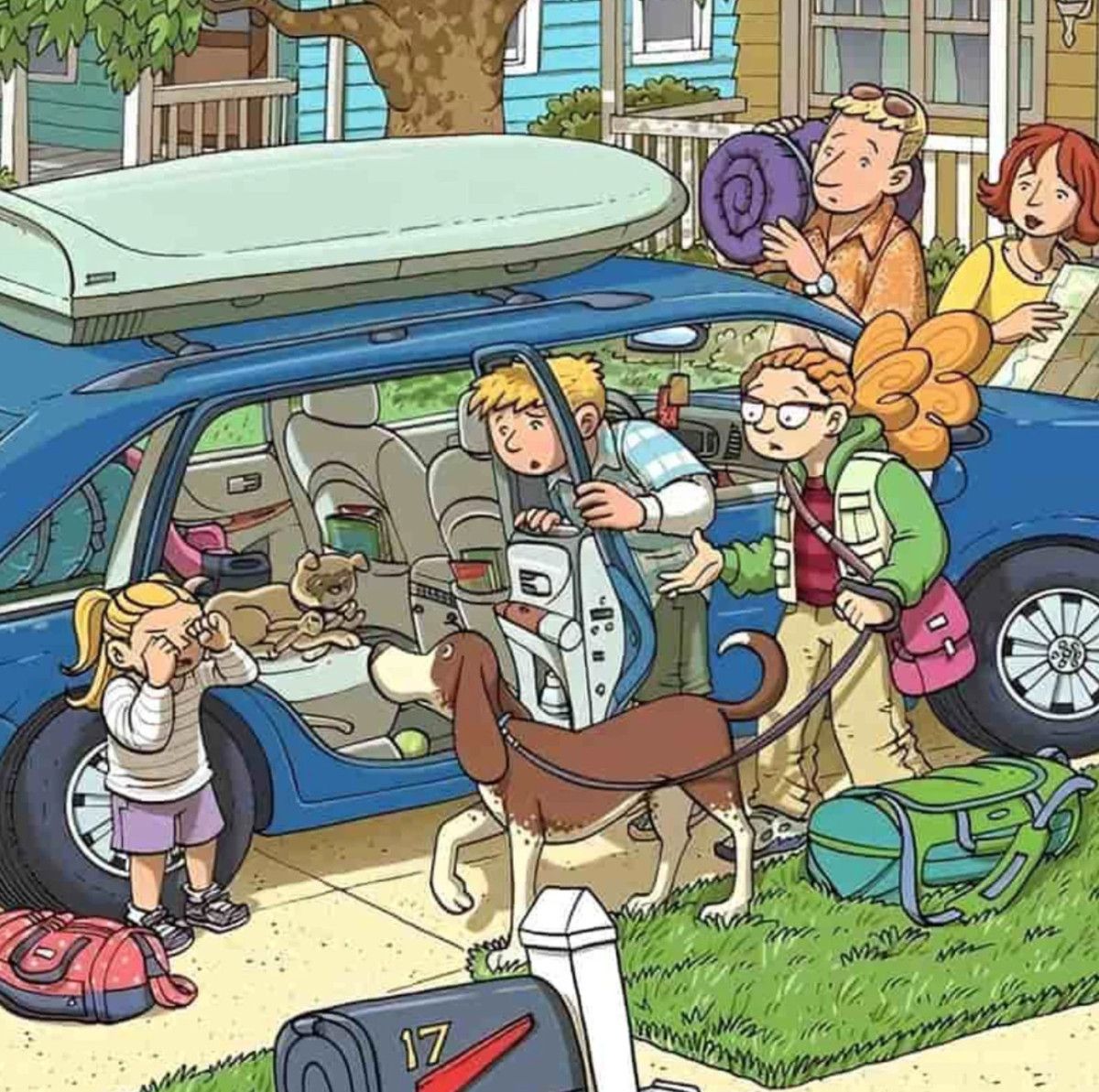 Tatile gitmek için hazırlanan bir ailenin araba etrafındaki hareketliliğinin yer aldığı görselde bir tavşan bulunuyor.