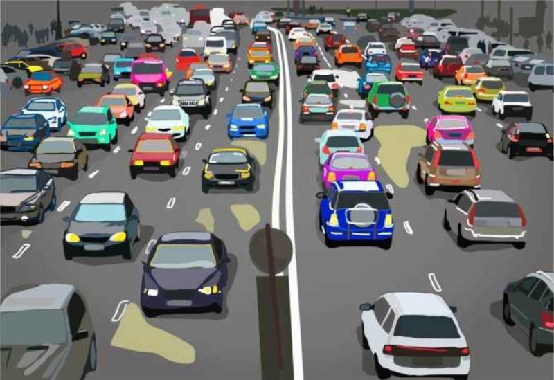 Aşağıdaki görüntüde okuyucuların karşısına altı şeritli bir otoyolda yoğun bir trafik manzarası sunuluyor.