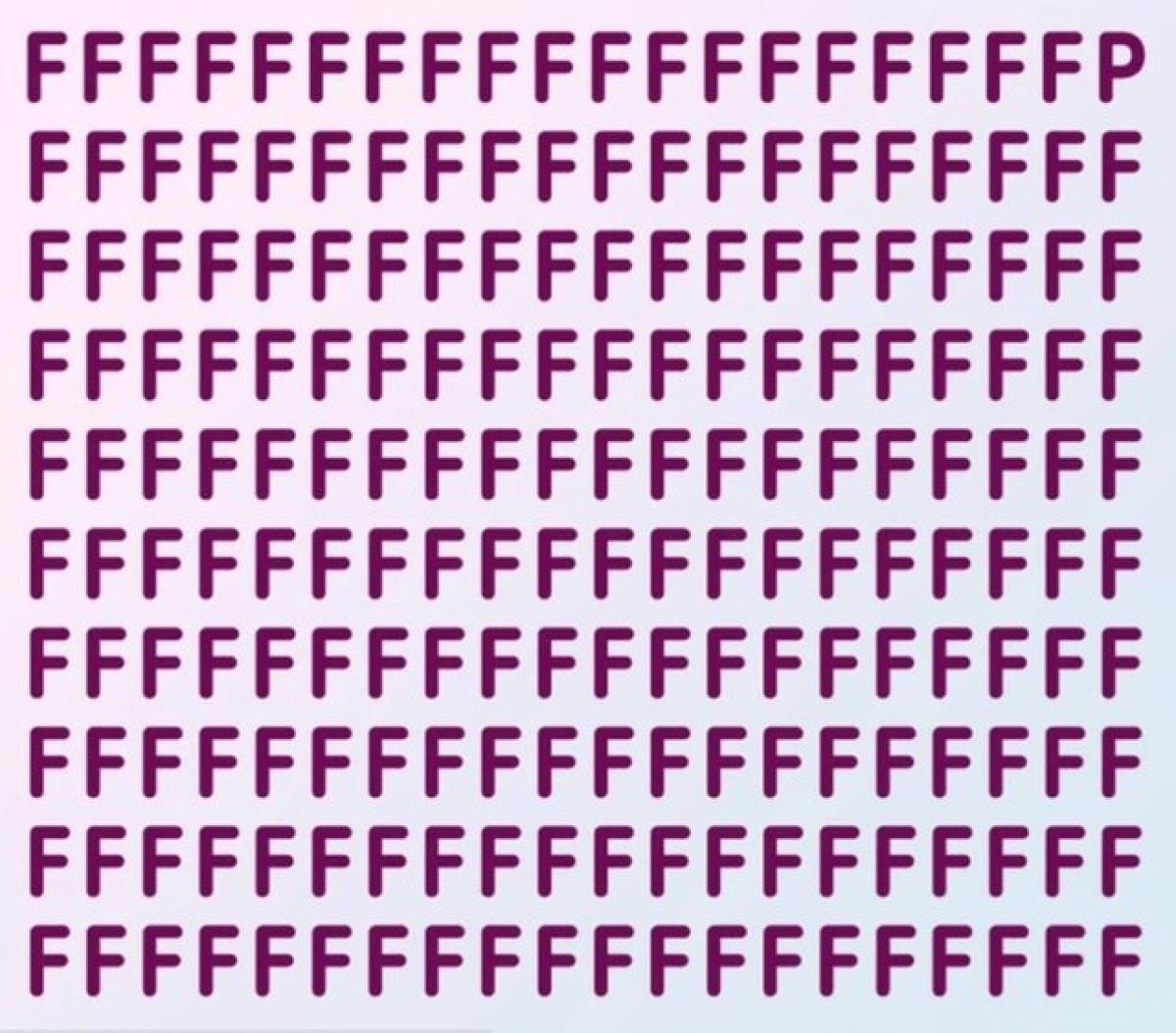 Aşağıdaki görselde bir sayfa dolusu F harfi yer alıyor. Ancak bu F harfleri arasına gizlenmiş farklı bir harf daha var.