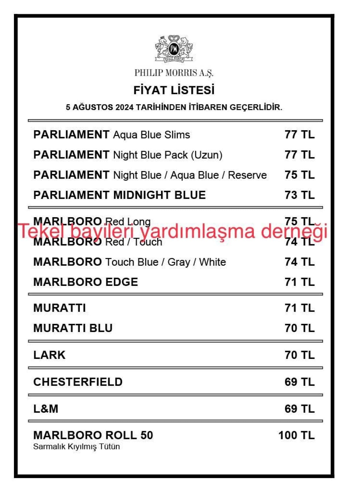Philip Morris grubunda en ucuz sigara 69 TL olurken, en pahalı sigara 77 TL oldu.