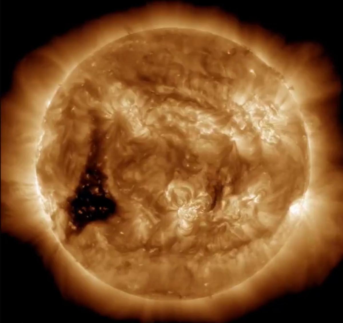 Güneş'in yüzeyinde "Koronal Delik" olarak adlandırılan olağanüstü büyüklükte bir karanlık delik oluştu.