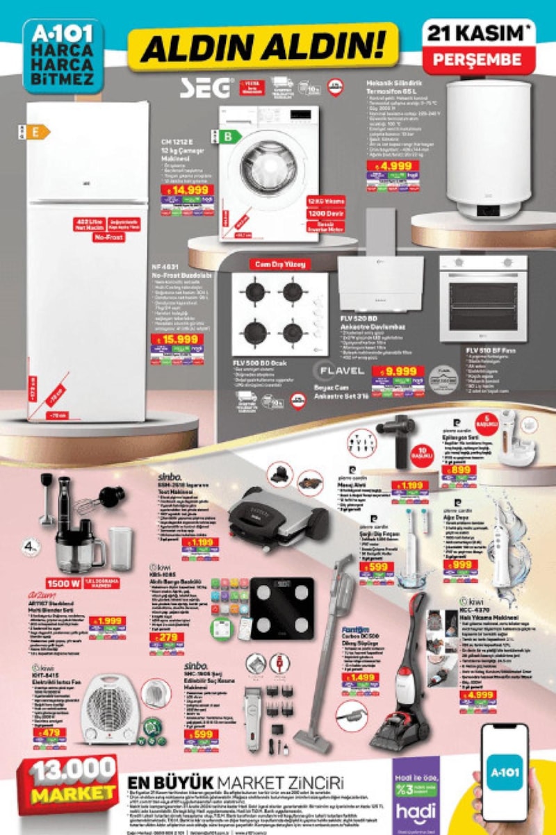 21 Kasım Aldın Aldın aktüel kataloğunda yok yok! Elektronik, mutfak gereçleri, ev aletleri ve kişisel bakım ürünleri, bütçe dostu fiyatlarla alıcılarını bekliyor. İşte A101 21 Kasım Aktüel Katalog…