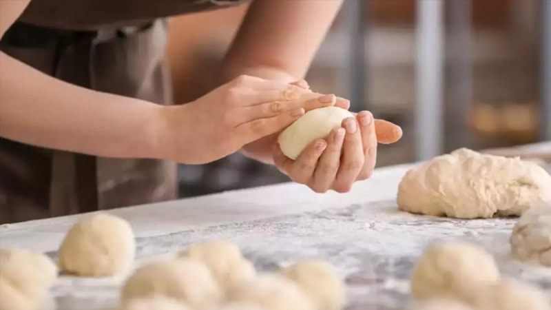 Azar azar un ekleyerek yoğurmaya başlayın. Ele yapışmayan, yumuşak bir hamur elde edene kadar un eklemeye devam edin.