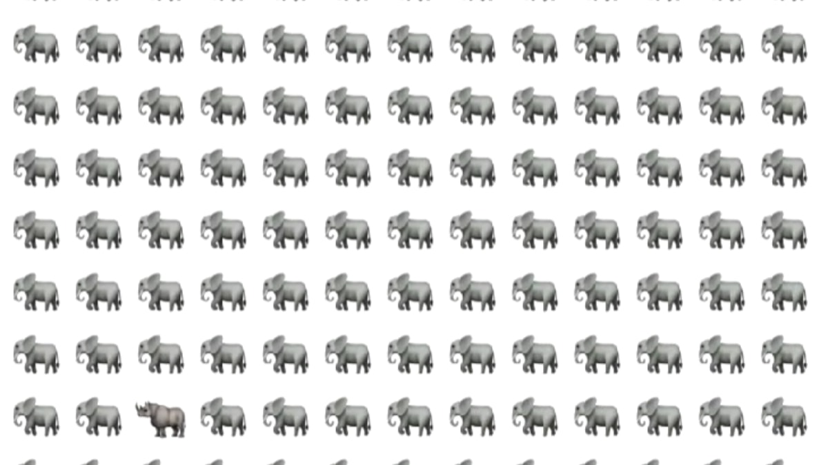 Resimde çok sayıda fil emojisi bulunuyor. Fakat aralarındaki bir emoji diğerlerinden farklı.