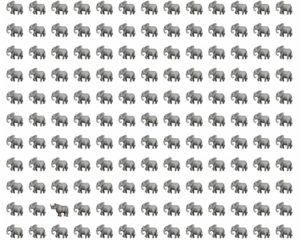 Resimde bulunan yüzlerce fil emoji arasında bir tane farklı emoji yer almaktadır.