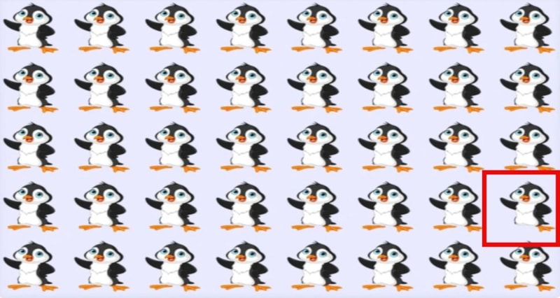 Teste katılanlardan penguenler ile dolu olan resimde farklı olanı en kısa sürede bulmaları isteniyor.